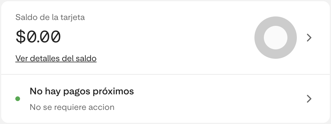 A continuación se muestra un ejemplo de la sección de saldo de la tarjeta si no tienes pagos próximos.